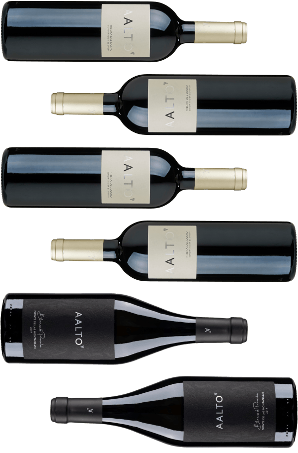Kassen består af 4 flasker af den legendariske Aalto i den forrygende årgang 2022 samt to flasker af den sjældne og fremragende hvidvin fra Aalto - 2021 Aalto - Blanco.