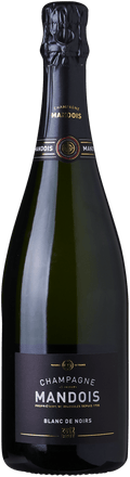 Blanc de Noirs betyder at en champagne er fremstillet udelukkende på blå druer, i dette tilfælde 100% Pinot Noir. Den burgundiske drue giver Champagnen ekstra fylde og vægt, ligesom vinen også har en fin tone røde bær - petits fruits, som franskmændene siger. Mandois Blanc de Noirs er både velegnet til at at ledsage canapeer, fisk, skaldyr og lyst fjerkræ, ligesom den også gør sig godt som en dejlig dekadent hyggevin uden mad til.