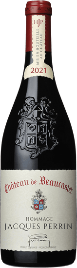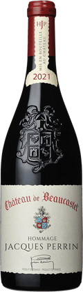 The 2021 Hommage a Jacques Perrin is composed of 75% Mourvedre, 10% Syrah, 10% Grenache, and 5% Counoise. Medium to deep garnet-purple in color, it pops from the glass with expressive notes of baked black plums, boysenberry preserves, and fruitcake, followed by hints of tar, black pepper, garrigue, and fragrant soil. The full-bodied palate delivers multilayered fruit with impressive grace, featuring fine-grained tannins and plenty of freshness, finishing long with a peppery lift.