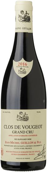 Fra 50 år gamle stokke i Grand Cru-marken Clos de Vougeot, laver Jean-Michel Guillon denne kæmpestore Pinot Noir. Kirsebær, solbær, figen og urter dominerer vinens friske og ekstremt aromatiske udtryk. I munden er vinen intens med mørke bær, skovbund, nelliker og anis. Vinene fra Clos de Vougeot handler ofte om rå power, men hos Guillon handler det mere om balance i udtrykket. Vinen er på én gang voluminøs og elegant. Det hele balanceres af et millimeterpræcist syrebid og de meget fine tanniner, der nærmest smelter væk i finish'en. Det her er fantastisk winemaking, som er stort allerede nu, men endnu større i fremtiden.