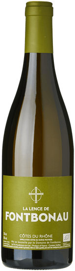 La Lence de Fontbonau er domænets hvidvin. Den er sammenstukket af dalens nordlige druesort Viognier (10 %) og den sydlige darling Roussanne (90 %). Således er Rhônedalens udtryk forenet på skønneste vis med noter af moden pære, honning og hvide blomster. På trods af vinens fyldighed holder den sig både delikat og frisk, og er en oplagt ledsager til de lidt tungere og federe fisk.