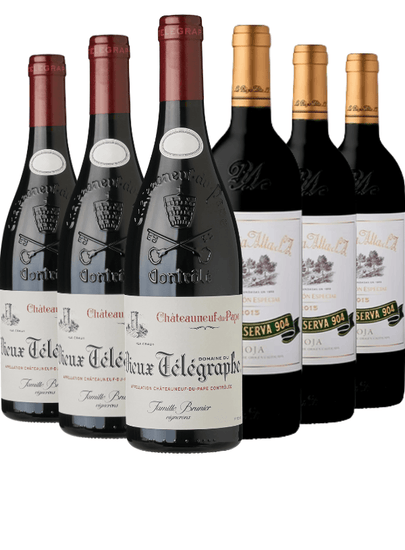 Med denne kasse får du to af de absolut ypperste vine fra disse to vinområder i form af den legendariske Châteaunuef-du-Pape fra Vieux Telegraphe samt La Rioja Altas magiske 904 Gran Reserva, der har opnået hele 98 point!