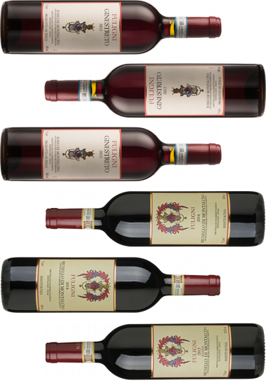 Kom indenfor i Eredi Fulignis Sangiovese-univers, og smag hele 3 forskellige niveauer af deres vine. Fra Rosso di Montalcino fra Ginestreto-marken, til deres flagskib Brunello di Montalcino som er sammensat af frugt fra alle 4 af husets marker, til kanonslaget i pølsenenden: Brunello di Montalcino Riserva. Eredi Fuligni laver kun riserva-vin i deres bedste årgange. De værner om vinens rygte som en hønemor, og vil hellere bruge de bedste druer til den gængse Brunello di Montalcino, end at producere end Riserva som ikke lever op til deres standarder.